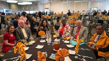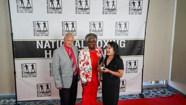 Eva watches her documentary teaser being premiered at the 2024 National Boxing Hall of Fame event.